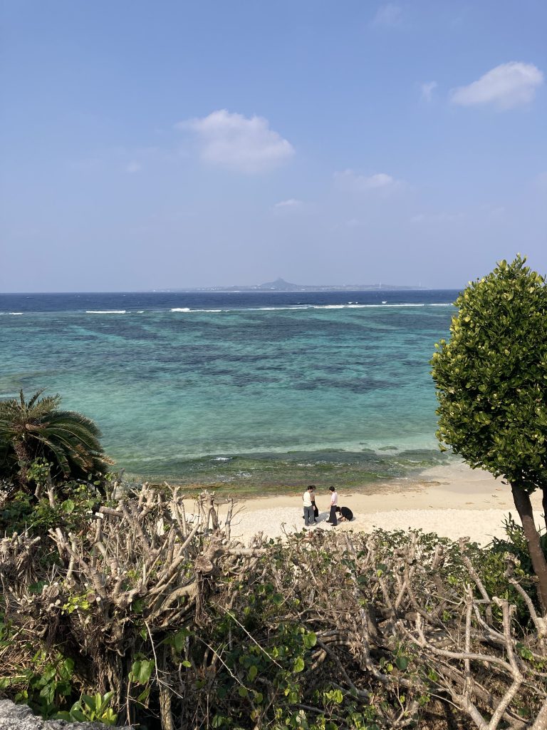 25年ぶりくらいの沖縄海洋博公園にしますか。伊江島のたっちゅーが見える。